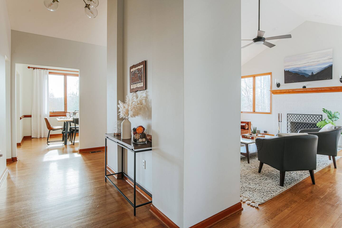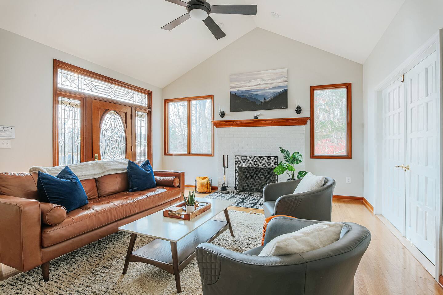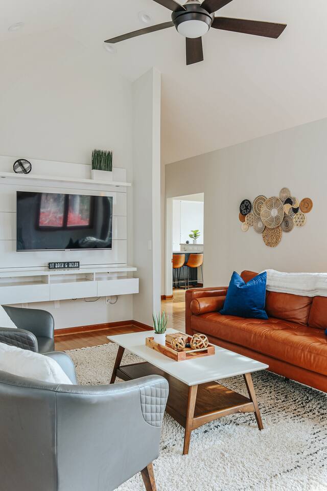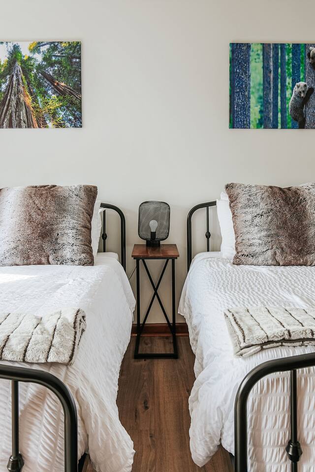 This mountain house features: - 2 floors of living & entertainment space - 8 comfy beds that easily sleep 13 people (with an additional crib and sleeping options available upon request) - Blazing fast 70gb fiber internet WiFi throughout the house - A full kitchen equipped with everything you need for your stay - Complimentary Amazon Music and Alexa throughout the home with Echo devices in the living room, kitchen, master bedroom, and downstairs entertaining area so music can be played in individual spaces or everywhere - A master suite with a California king bed with great views over the valley and mountains, a lounge area to enjoy your morning coffee, and a master bathroom with double vanities and a 2-person jacuzzi tub - Plenty of parking for all guests (6 vehicles can easily fit before guests might need to move cars for others to get out) The Entertainment Area includes: - Fully equipped wet bar made of local live-edge wood and featuring a dual-zone wine / beer refrigerator for your local libations at their perfect temperatures - Professional ping pong table with premium paddles & balls ideal for satisfying any competitive urges - A movie/TV area with a giant bean bag bag, sectional couch and a “I want to lay that!” plush shag carpet for watching the huge, fully swivel-able 75” 4K UHD TV equipped with Roku so you can enjoy all the streaming entertainment options you do at home - A live edge bar area with bar stools that are ideal for watching the ping pong matches, the huge TV with the latest movie, game, Super Bowl, or championship game, or simply for just enjoying some drinks The great deck space features: - Adirondack chairs to sit back & relax in while you enjoy the pretty views - A gas firepit to enjoy and make s’mores over - Perfect custom-dimmable patio lights ambience - A 5-burner gas barbecue grill with grilling tools to cook out with The home also includes: - A living room with provided board or card games, a 55” 4K UHD TV (equipped with a Roku so you can enjoy all the same streaming entertainment options you have at home), a fireplace with beautiful tile artwork (fire wood available at the IGA store 5 min from the house), and a stunning 100-year old door to the deck that dazzles with intricate glasswork reflecting the light throughout the day - A dedicated workspace in the master bedroom in case a guest needs a work desk should work need to interrupt your vacation - A mud room / laundry room just inside the main back entry to make coming back from skiing or hiking pain free and to help you get back out for your next adventure quickly - Seasonal access to the community pool which is a 5-min drive from the house (open Memorial Day to Labor Day, 2-6 PM daily for up to 6 guests at a time). - Butterfly Trees around the property that feature dozens of beautiful butterflies fluttering about during their active season Come enjoy your next adventure as our guests at this wonderful vacation spot!