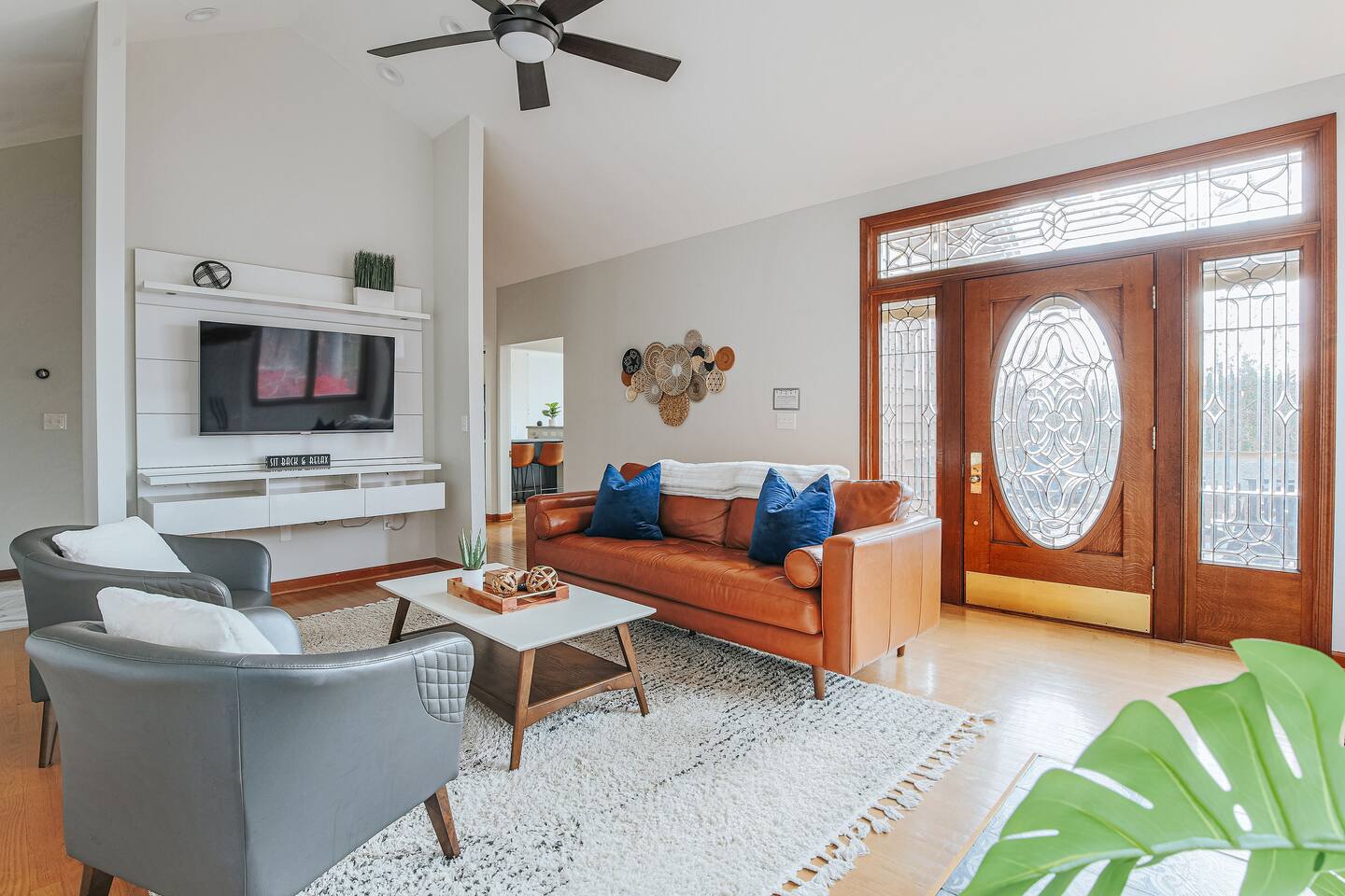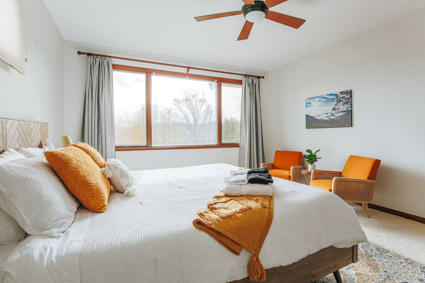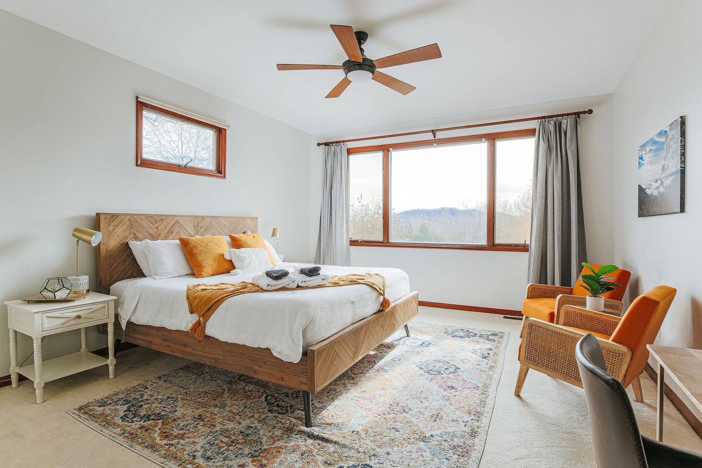 This mountain house features: - 2 floors of living & entertainment space - 8 comfy beds that easily sleep 13 people (with an additional crib and sleeping options available upon request) - Blazing fast 70gb fiber internet WiFi throughout the house - A full kitchen equipped with everything you need for your stay - Complimentary Amazon Music and Alexa throughout the home with Echo devices in the living room, kitchen, master bedroom, and downstairs entertaining area so music can be played in individual spaces or everywhere - A master suite with a California king bed with great views over the valley and mountains, a lounge area to enjoy your morning coffee, and a master bathroom with double vanities and a 2-person jacuzzi tub - Plenty of parking for all guests (6 vehicles can easily fit before guests might need to move cars for others to get out) The Entertainment Area includes: - Fully equipped wet bar made of local live-edge wood and featuring a dual-zone wine / beer refrigerator for your local libations at their perfect temperatures - Professional ping pong table with premium paddles & balls ideal for satisfying any competitive urges - A movie/TV area with a giant bean bag bag, sectional couch and a “I want to lay that!” plush shag carpet for watching the huge, fully swivel-able 75” 4K UHD TV equipped with Roku so you can enjoy all the streaming entertainment options you do at home - A live edge bar area with bar stools that are ideal for watching the ping pong matches, the huge TV with the latest movie, game, Super Bowl, or championship game, or simply for just enjoying some drinks The great deck space features: - Adirondack chairs to sit back & relax in while you enjoy the pretty views - A gas firepit to enjoy and make s’mores over - Perfect custom-dimmable patio lights ambience - A 5-burner gas barbecue grill with grilling tools to cook out with The home also includes: - A living room with provided board or card games, a 55” 4K UHD TV (equipped with a Roku so you can enjoy all the same streaming entertainment options you have at home), a fireplace with beautiful tile artwork (fire wood available at the IGA store 5 min from the house), and a stunning 100-year old door to the deck that dazzles with intricate glasswork reflecting the light throughout the day - A dedicated workspace in the master bedroom in case a guest needs a work desk should work need to interrupt your vacation - A mud room / laundry room just inside the main back entry to make coming back from skiing or hiking pain free and to help you get back out for your next adventure quickly - Seasonal access to the community pool which is a 5-min drive from the house (open Memorial Day to Labor Day, 2-6 PM daily for up to 6 guests at a time). - Butterfly Trees around the property that feature dozens of beautiful butterflies fluttering about during their active season Come enjoy your next adventure as our guests at this wonderful vacation spot!